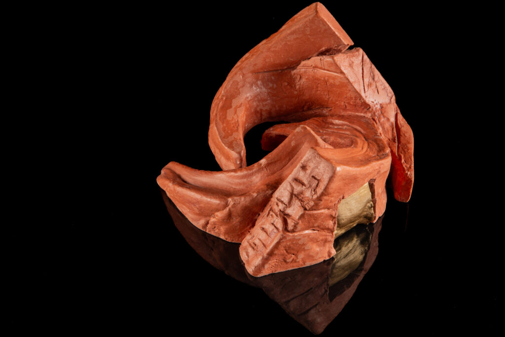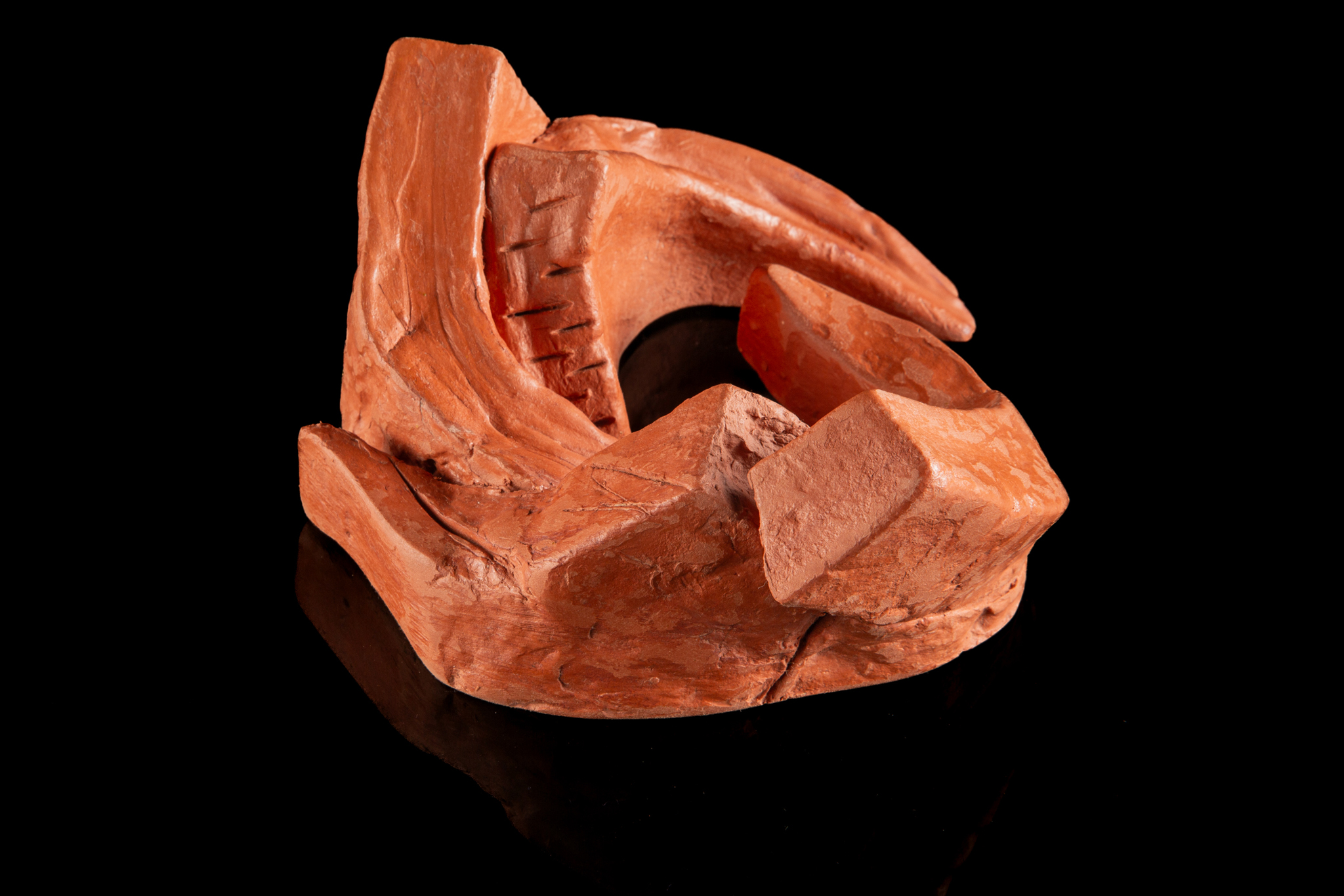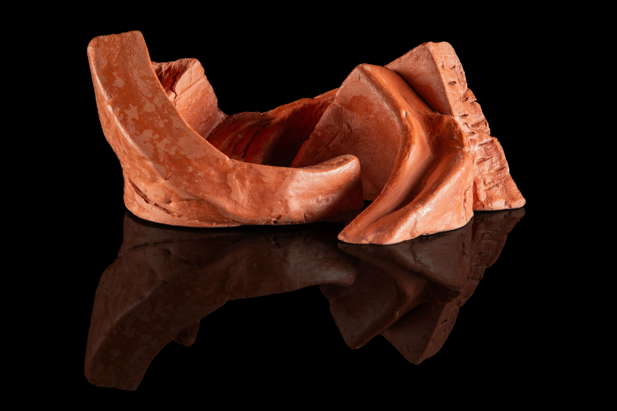 Pasta polimérica terracota con entintado en oro líquido, bruñido a mano.