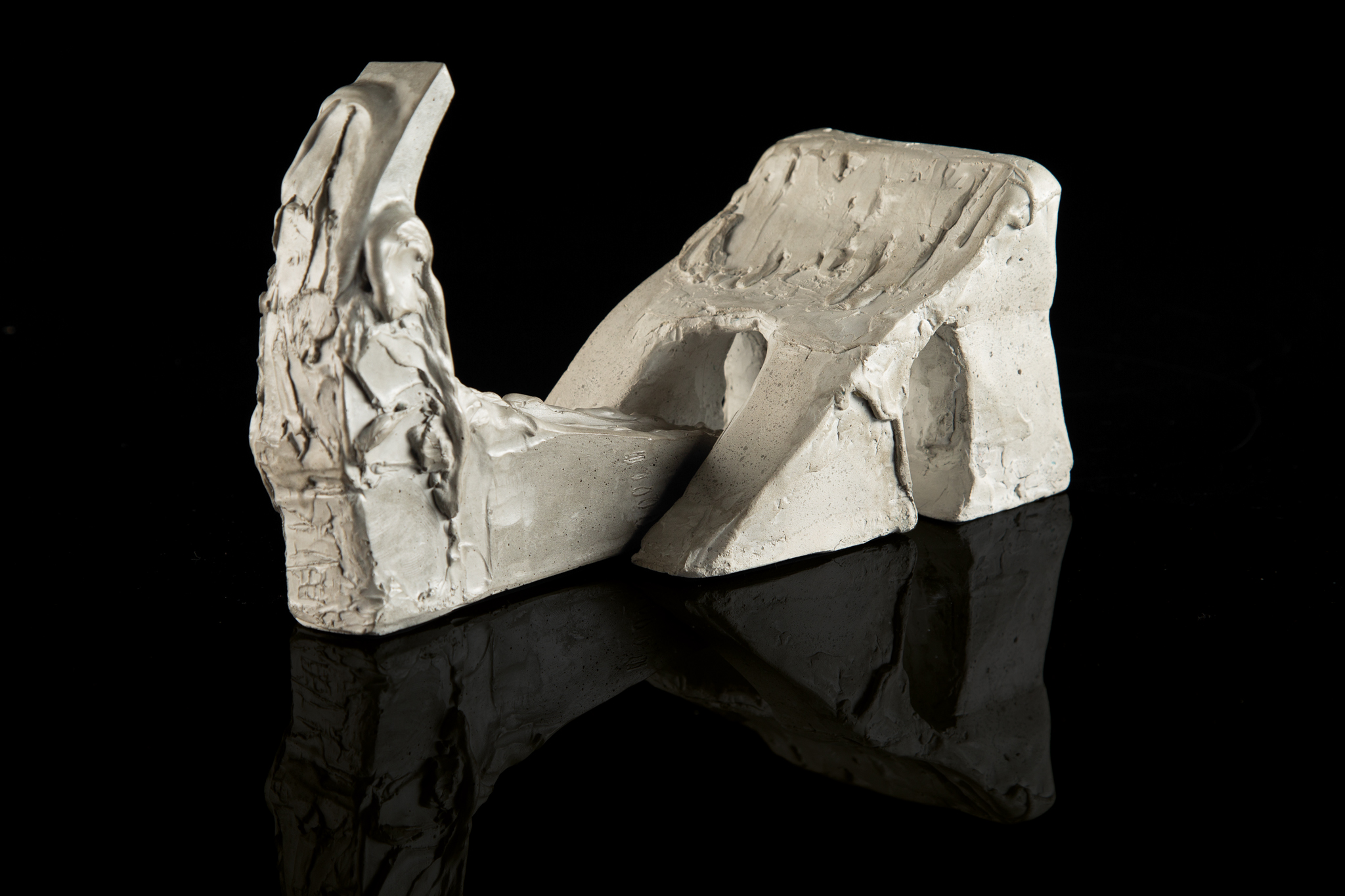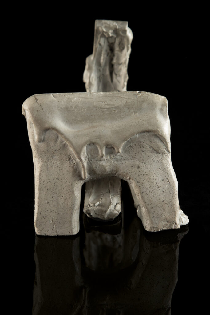 Un descuido, un “accidente de taller”, que estuvo al borde de la calamidad, reveló inesperadamente el potencial expresivo de la forma alterada cuando se trasgrede el límite convencional de la materia plástica. Esta experiencia me llevó a explorar la distorsión intencional de la materia para romper la monotonía impuesta y desvelar dimensiones de expresividad ocultas.