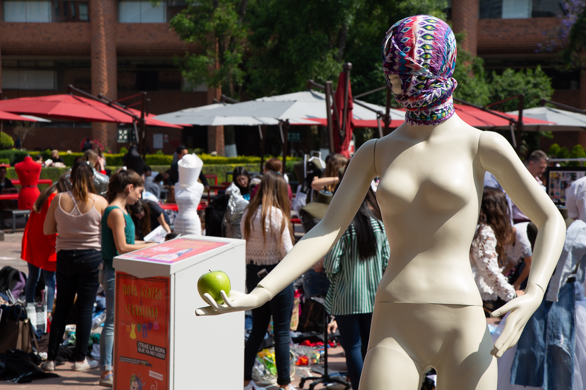 El conjunto escultórico se presentó activando un happening: cerros de ropa abandonada alrededor y la instrucción a los visitantes a que en un mínimo de tiempo, seleccionaran velozmente las prendas de su predilección