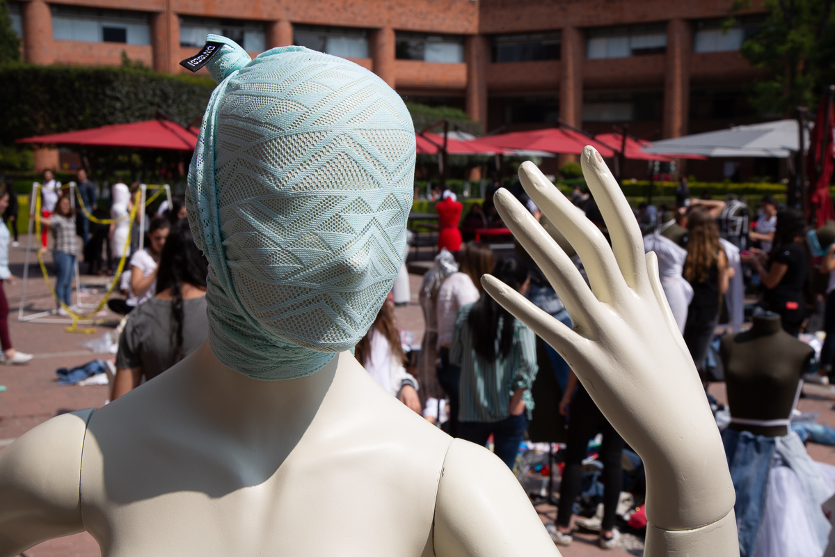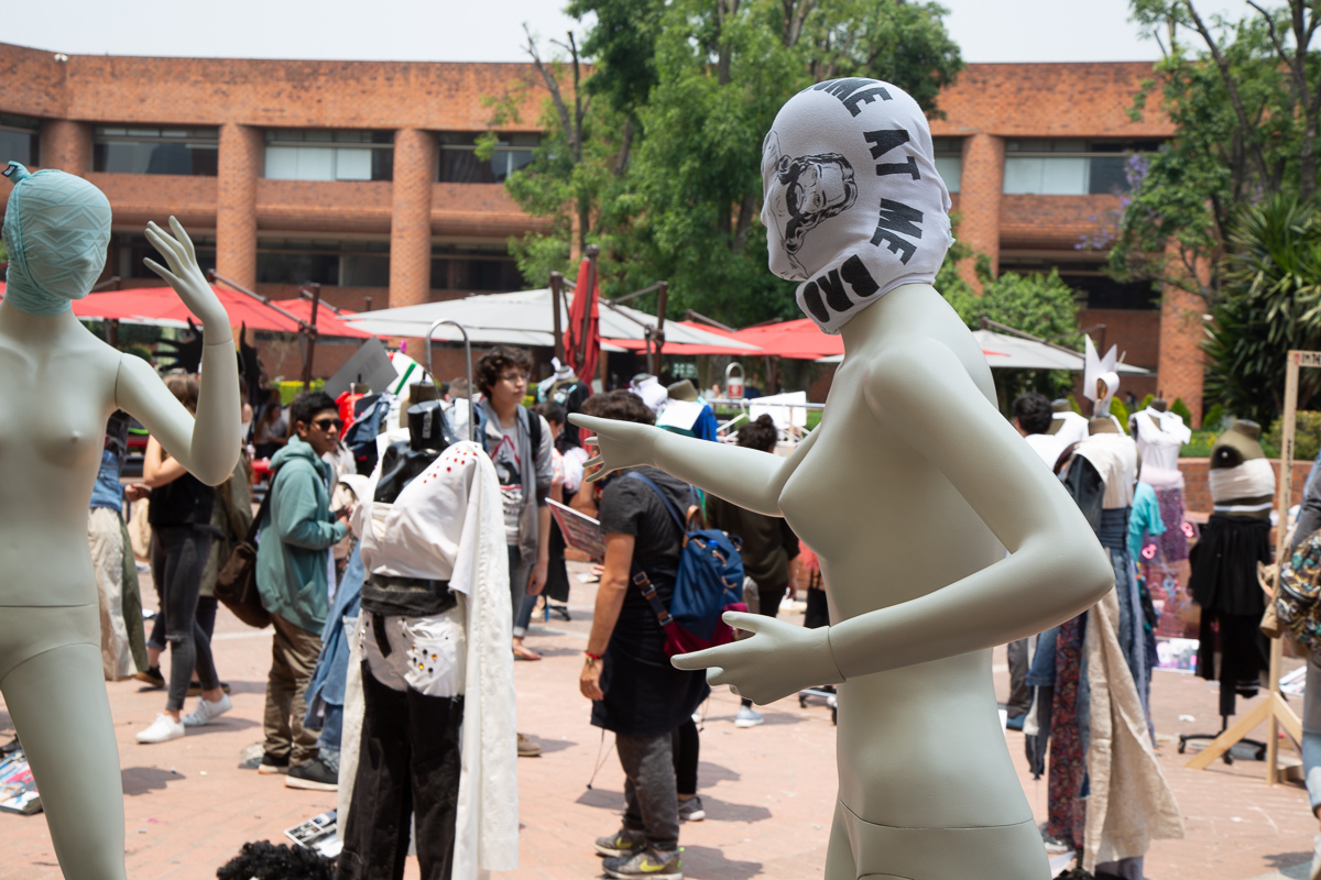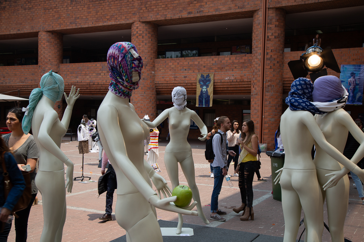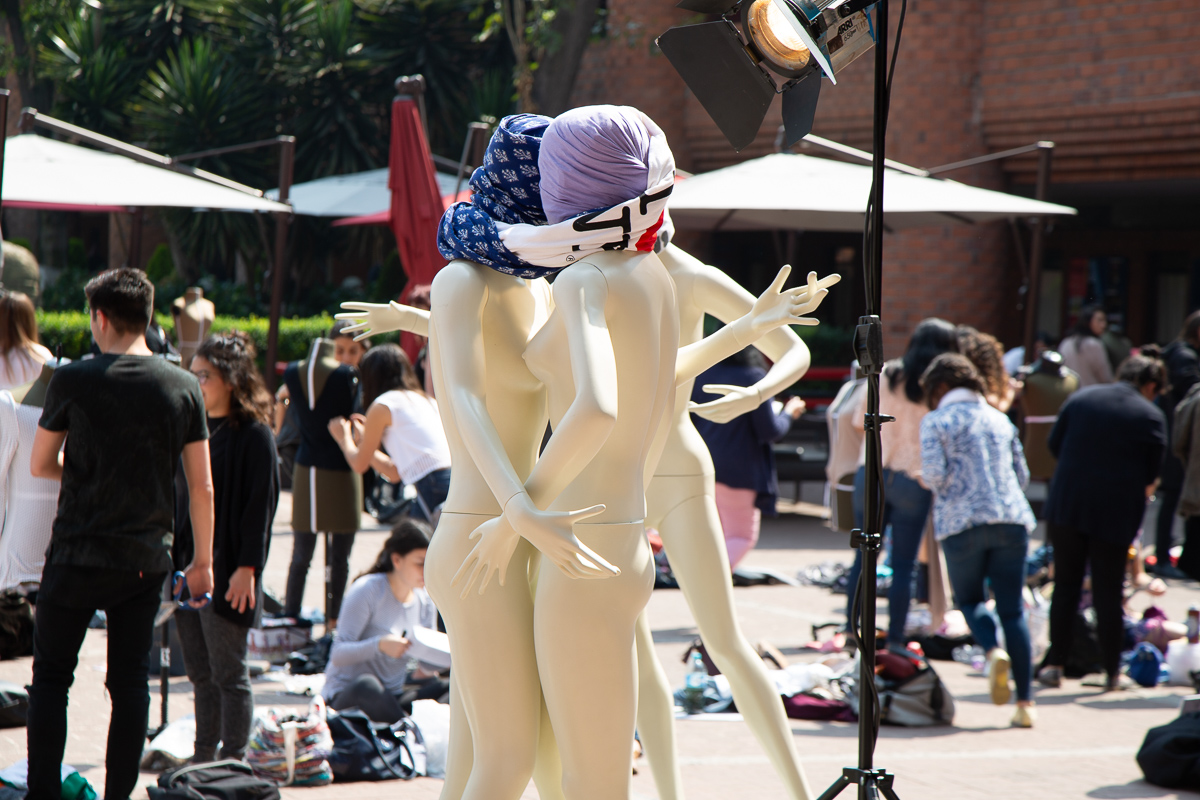 Los Amantes. A propósito de Magritte. 2017. Transitable. Conjunto escultórico y happening. Ensamble tela, fibra de vidrio. 6 de abril 2017. Medidas variables. Explanada Central Universidad Iberoamericana. Autor