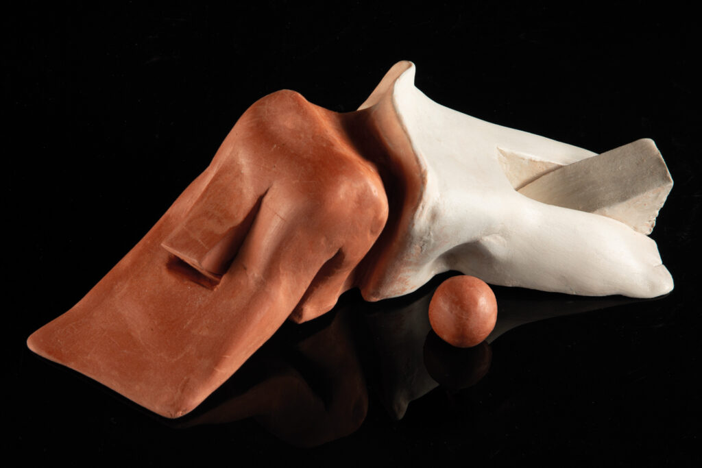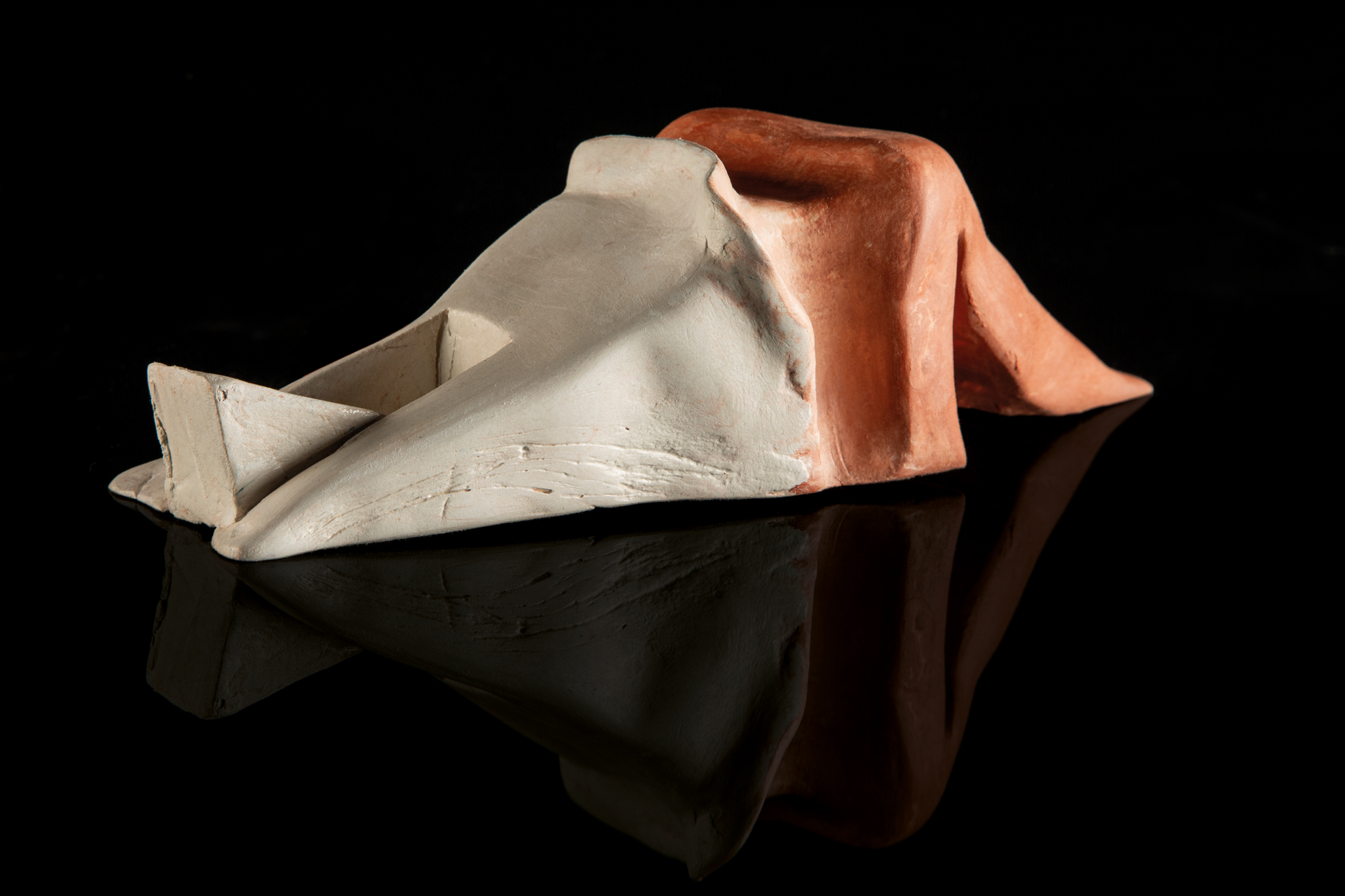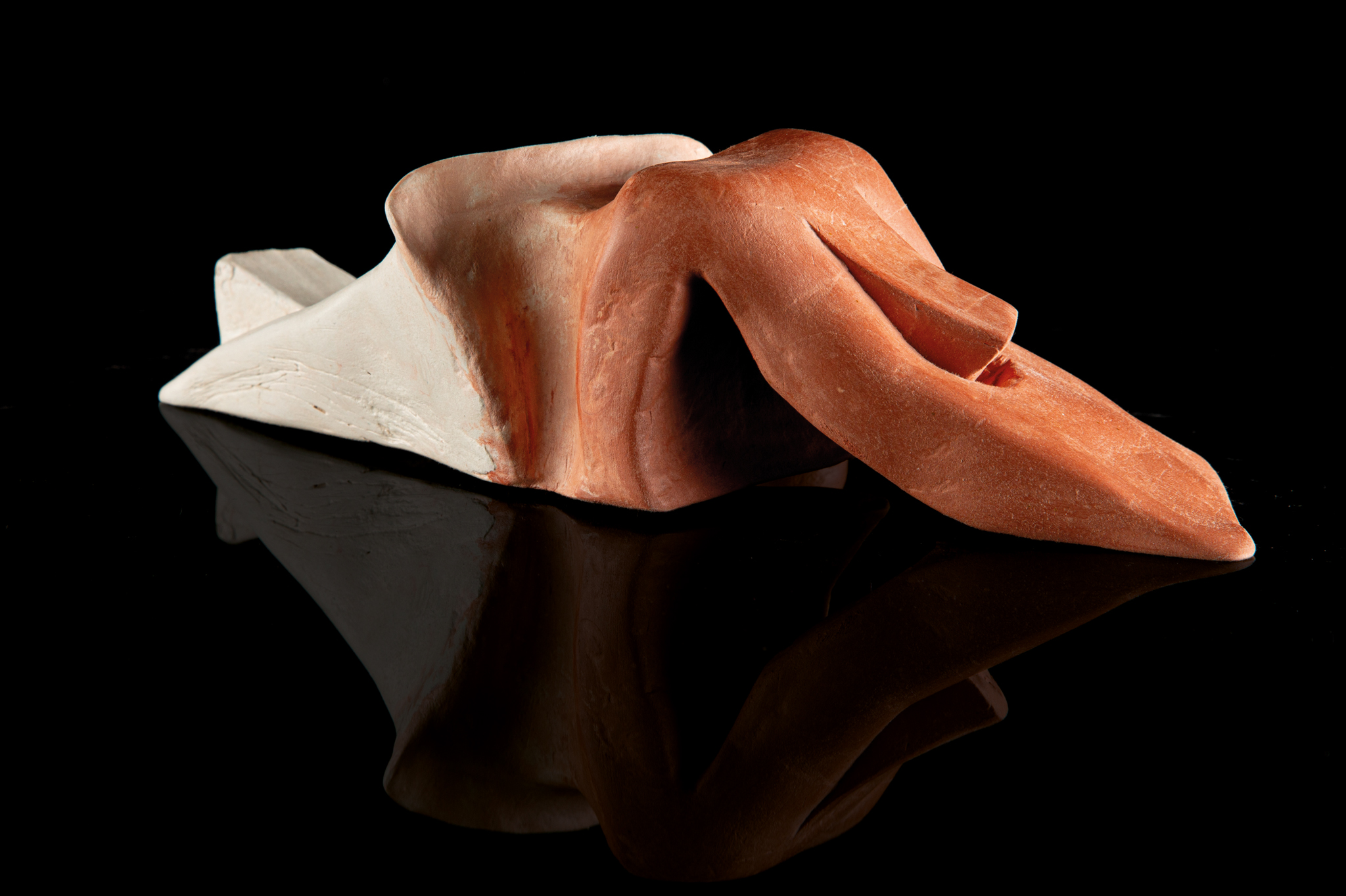 Pastas poliméricas terracota y blanco, bruñido a mano.